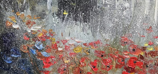 Oil Hand-painting On Canvas of a Bear In Birch Forest And Poppy Field