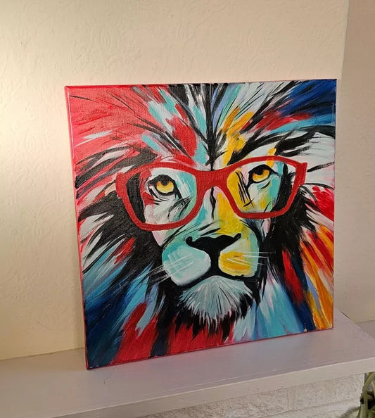 Oil Hand-painting On Canvas of a Colorful animal Lion