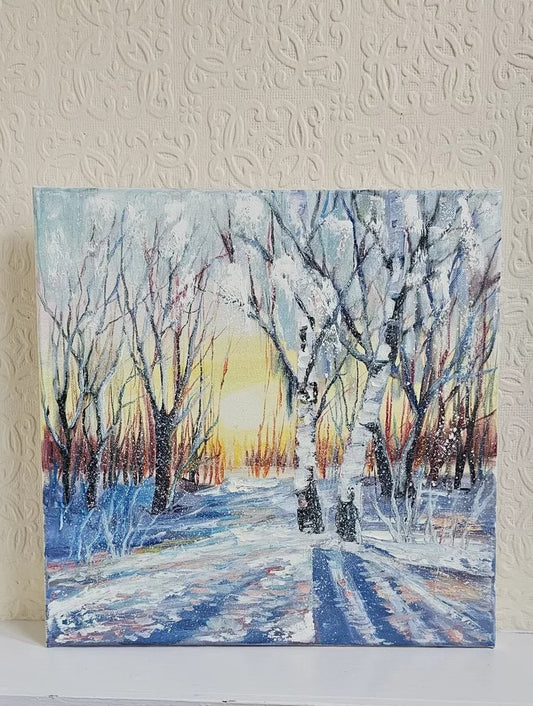 Oil Hand-painting On Canvas of A Birch Forest In The Winter Snow