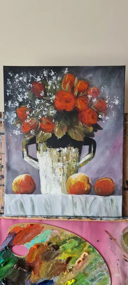 Oil hand painting on canvas wall art home decor picture of flower bouquet vase