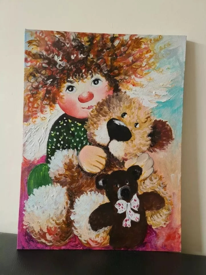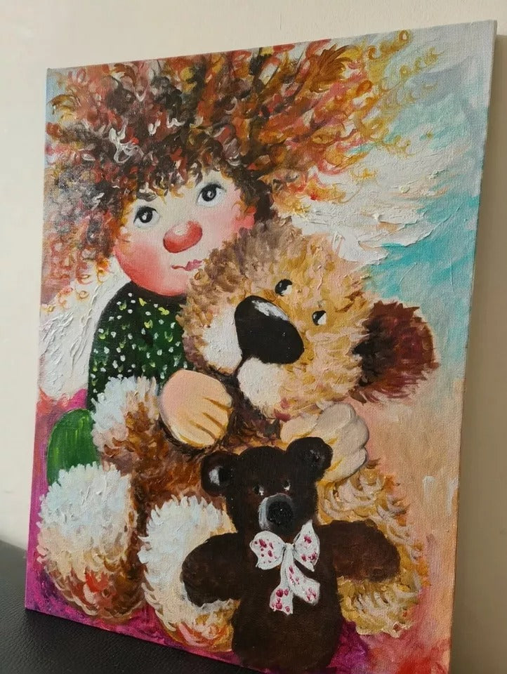 Oil hand painting on canvas wall art home decor picture of angel home spirit elf of happiness fairy that brings home love and happiness. Beautiful funky hand painting. Brand new. Size 40x30cm. Painted with oil paint on strong canvas. Great Birthday present. Will be posted via Parcel Force.